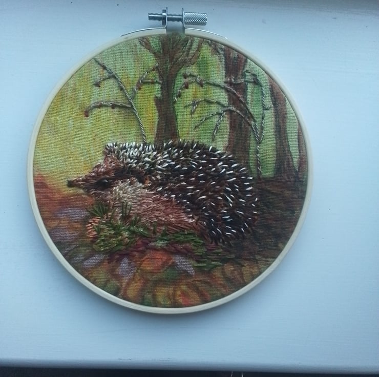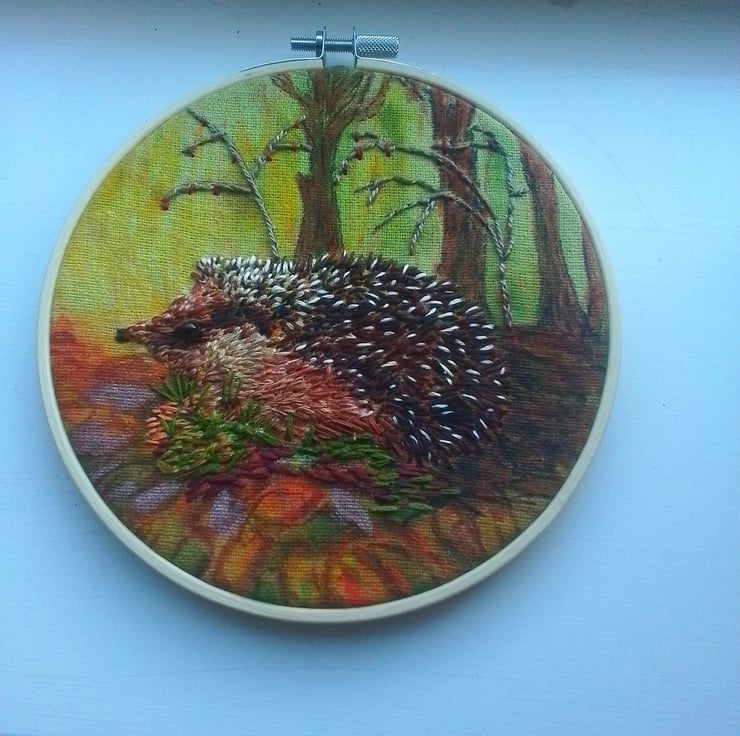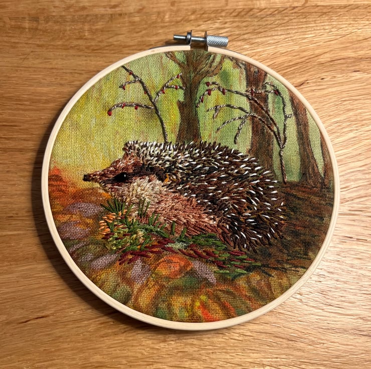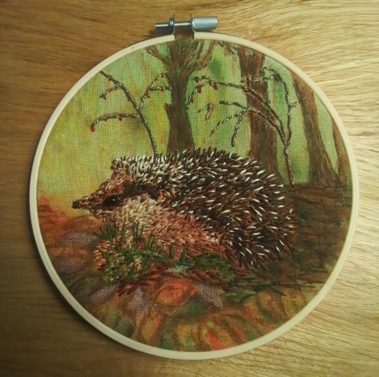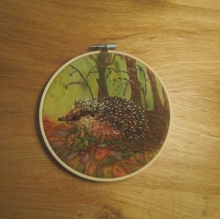 A unique picture, which would be lovely as a gift for hedgehog lovers .