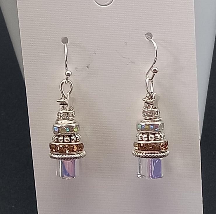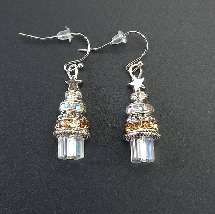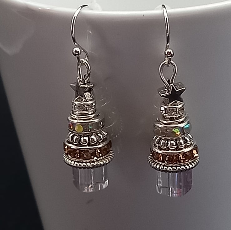 These sparkly Xmas tree earrings are just the thing for your Christmas celebrations. Composed of crystal spacers, metal beads and stars and cube beads, they are suspended from good quality silver plated findings. You can also opt for sterling silver hooks in the same style for just £2 extra - just select from the options before checkout, They measure 3cm in length and 1 cm at widest point.