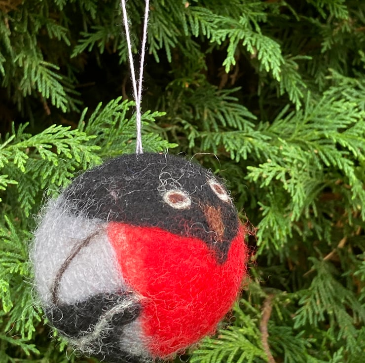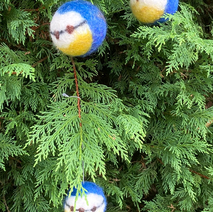 Set of 2 needle-felted wool hanging bauble decoration. Garden birds