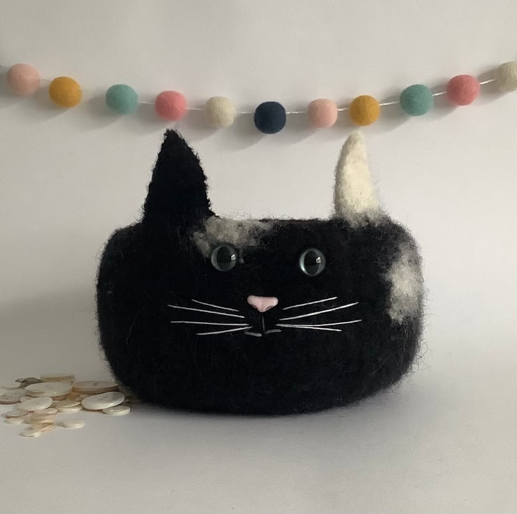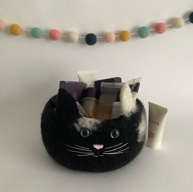 I have designed and made this perfectly useful , fun , OOAK , 'Fusspot' bowl / desk tidy using 100% pure wool and alpaca. What a sweet feline ! perfect for the kitty lover!