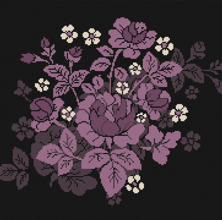 Cross Stitch Pattern Floral Lilac Roses - Vintage damasc Roses in three colours - Art design by Vivsters- PDF counted chart 239