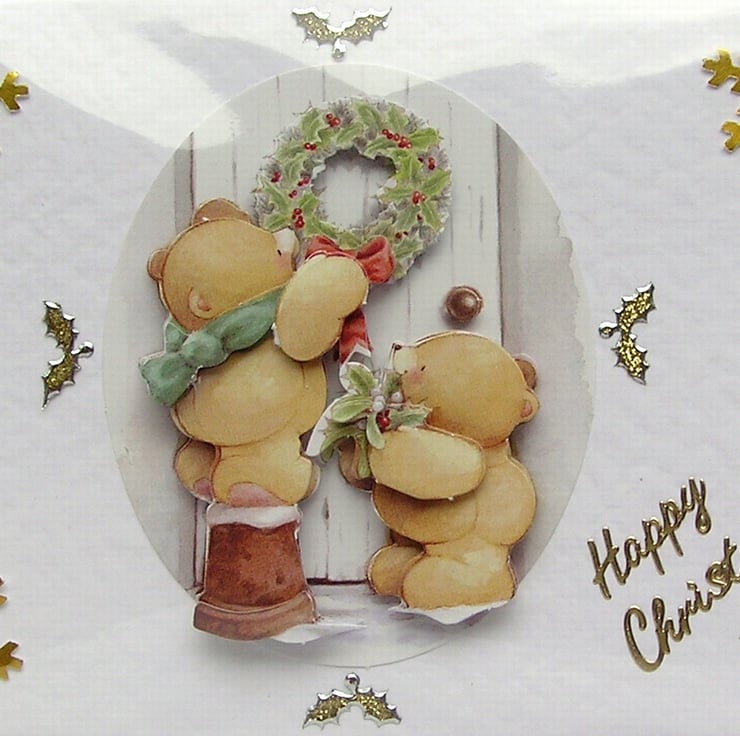 Happy Christmas Hand Crafted Decoupage Christmas Card - Happy Christmas 2217