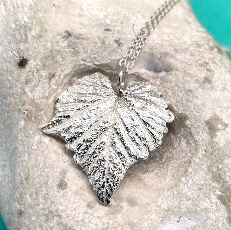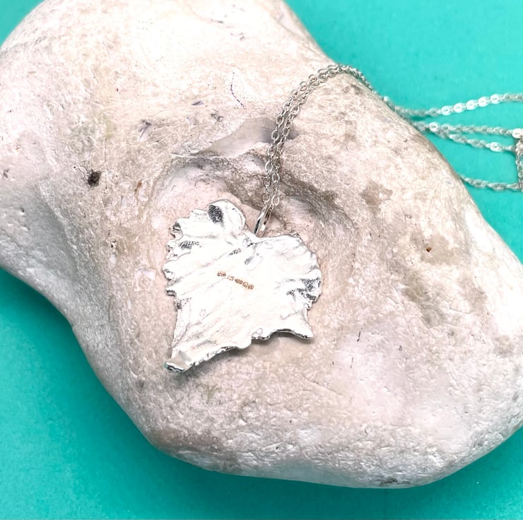 I coated the leaf in multiple layers of fine silver (pure silver) paste, before firing and hand polishing the silver.