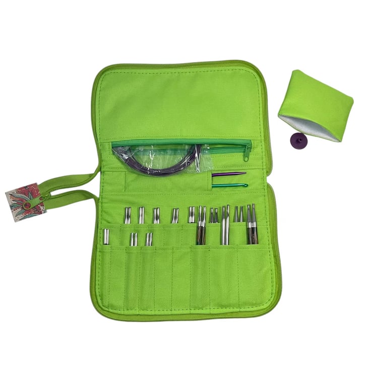 Interchangeable knitting needle case, fully zip around knit pro case,