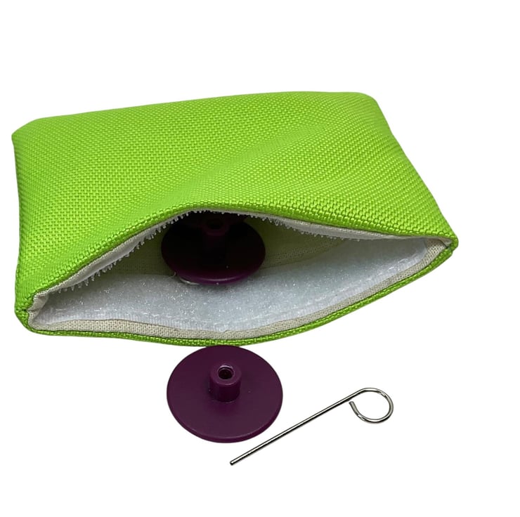 This good sized case holds 17 or more sets of needles, the lower pocket can hold the shorter length 10cm (4" ) needles and both pockets are able hold up to 13cm (5") in length. The slots are offset so needles sit comfortably in front of each other. The slots differ in sizes to accommodate 2.75mm (US 2) or smaller right up to 10mm (US 15) This case also works well for the shorter 12cm double pointed needles.