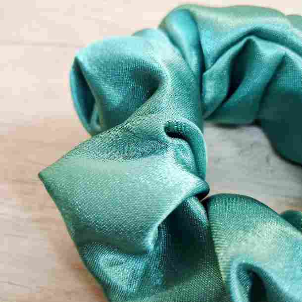 Handmade green satin scrunchie