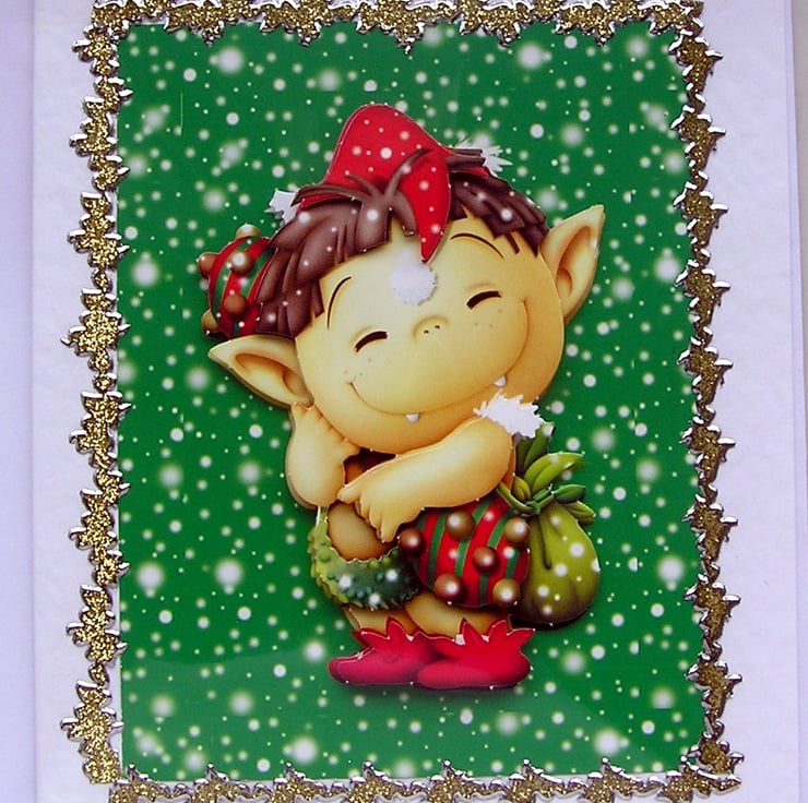 Happy Christmas Hand Crafted Decoupage Christmas Card - Happy Christmas 2512