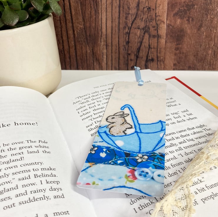 Printed ‘Bunny at sea’ printed laminated bookmark by Michelle Corbin