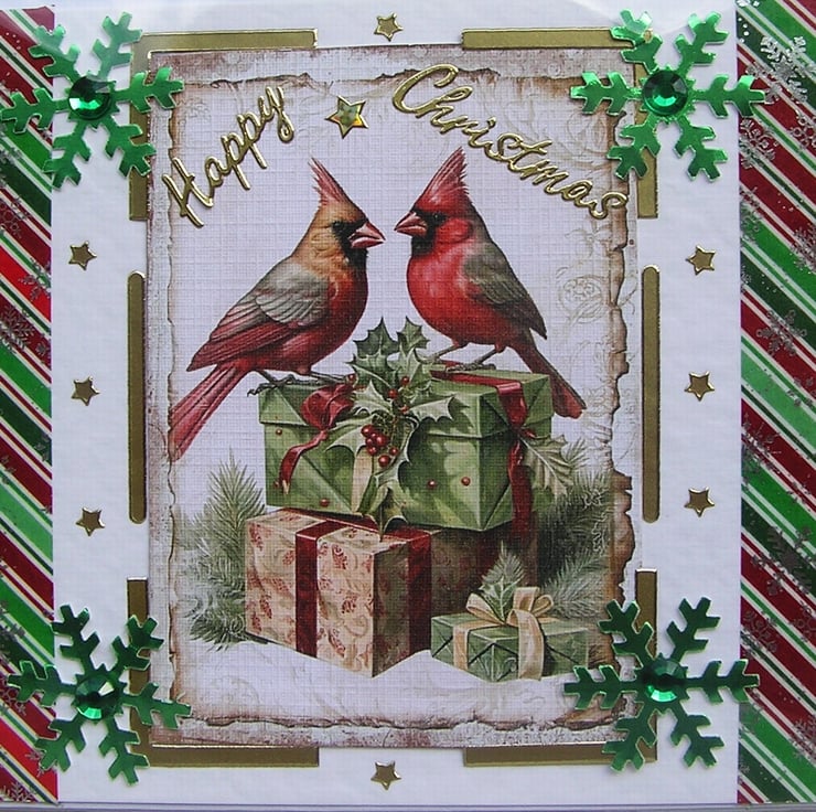 Happy Christmas Hand Crafted Decoupage Christmas Card - Happy Christmas 2962