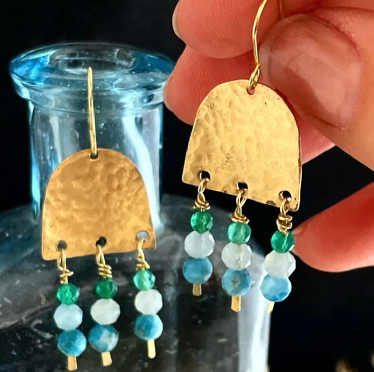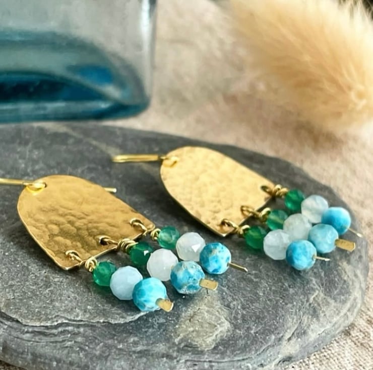 Boho Brass Earrings in Ocean Colours with Gemstones