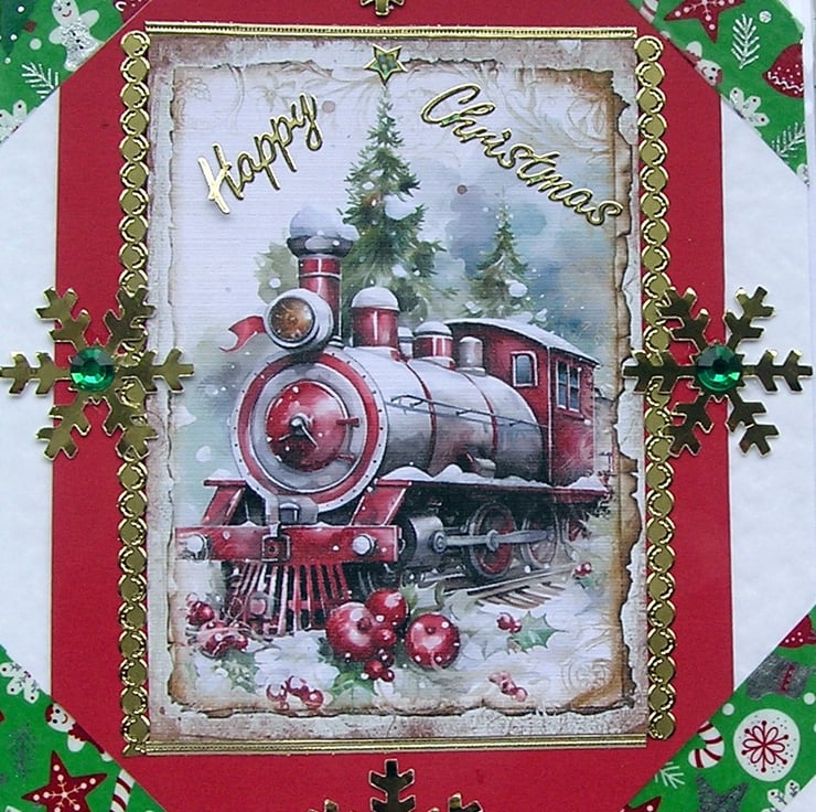 Happy Christmas Hand Crafted Decoupage Christmas Card - Happy Christmas 2717