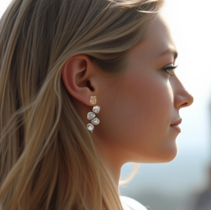 Discover the beauty of our stunning Keshi shape white pearl accessory, measuring 26mm in total length. This elegant piece features a lustrous white pearl that exudes sophistication. Enhanced with a gold plating, it adds a touch of glamour to any outfit, whether for everyday wear or special occasions.