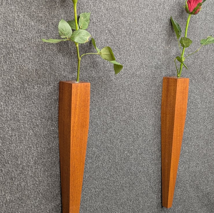 Hand crafted wall mounted pair if single flower pot made from mahogany wood finished with danish oil and wax