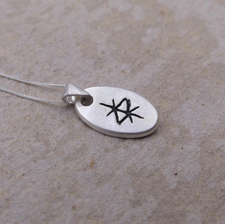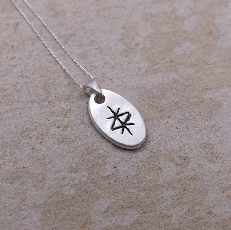 Recycled Sterling Silver Protection Bind Rune Pendant Necklace ECO STS Chain.