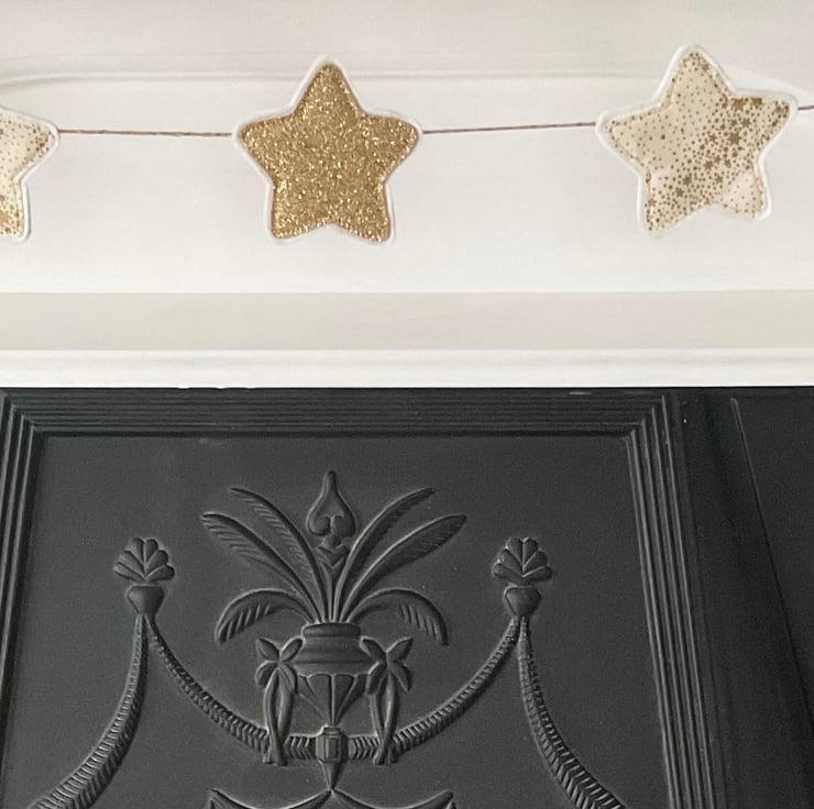 This Star Garland consists of 9 Stars, 5 gold and 4 cream. Each star measures approximately 8cm. The length of the garland is 1.60. The garland can be made to any length.