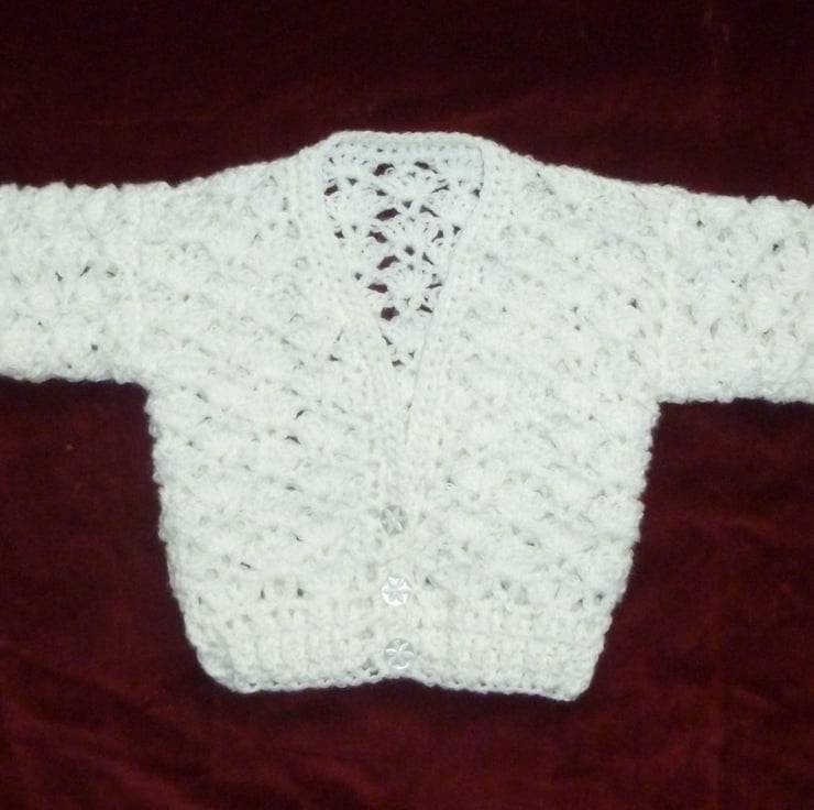 This pretty baby cardigan has been crocheted to my own design and pattern.