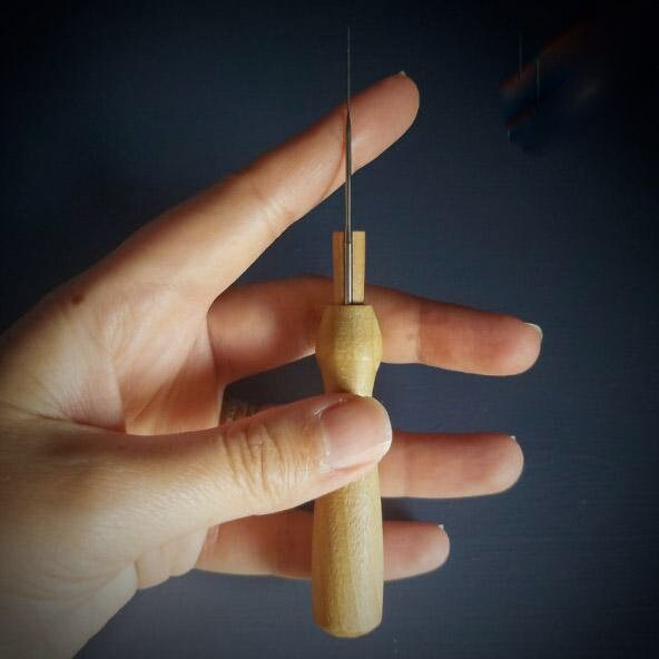 This wooden handle single needle holder enables a comfortable grip on your felting needle. The needle can also be turned and placed inside the handle for safe storage.