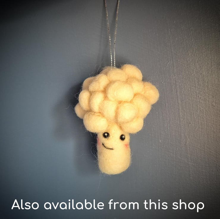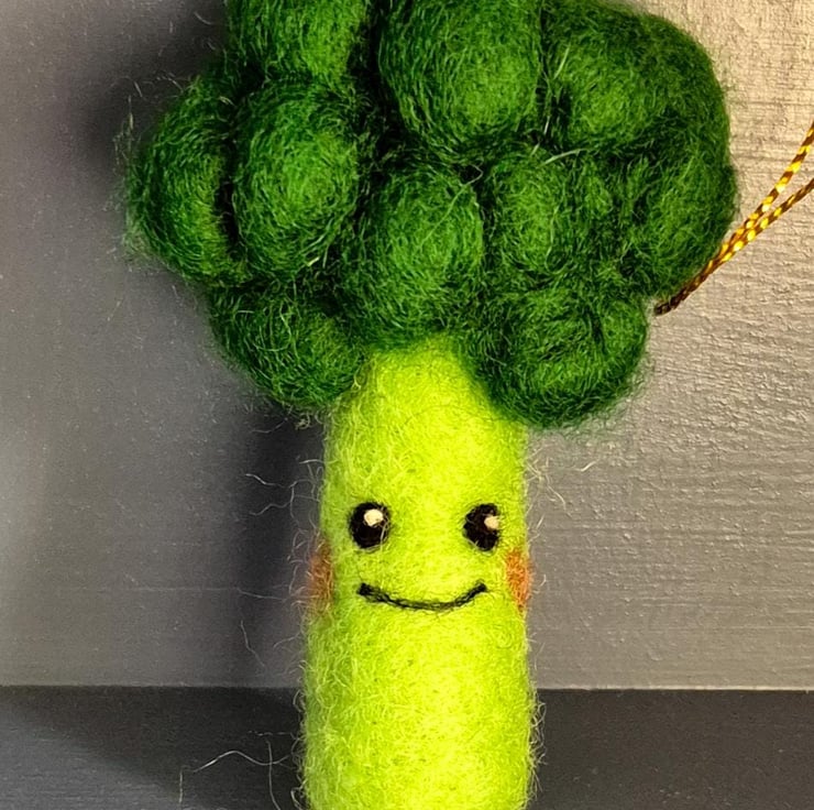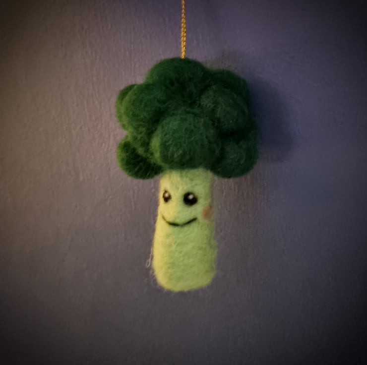 A fun and festive handmade needle felted broccoli tree decoration. Add something special to your tree this year with this unique christmas ornament.
