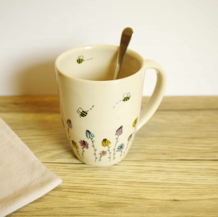 The mugs you receive may not be on the one shown in the photograph but will be very similar.