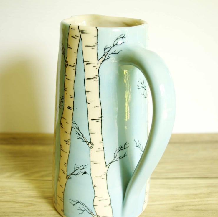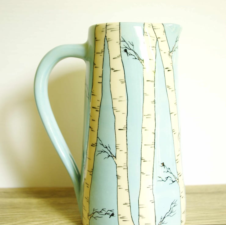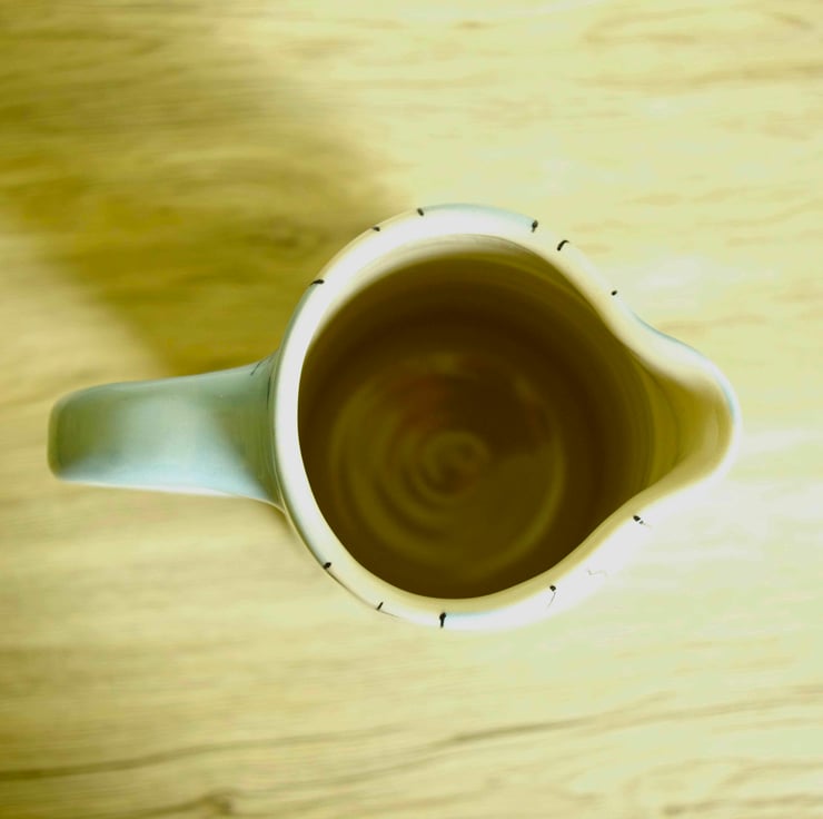 These jugs are hand-thrown on a wheel using stoneware clay and glazes fired in an electric kiln.