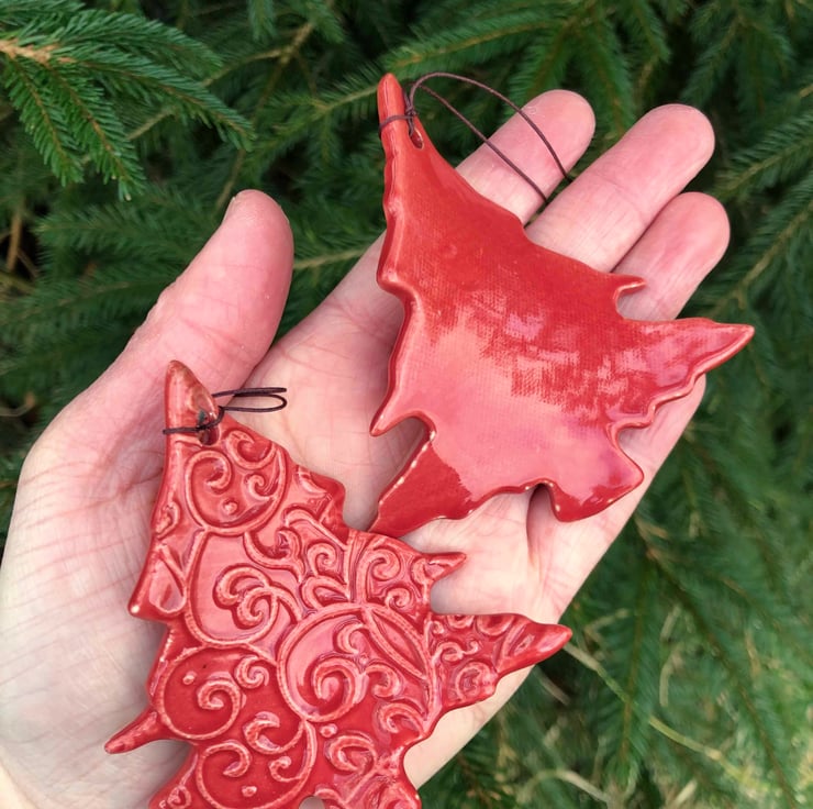 These large trees are hand-built using earthstone clay and glazes fired in an electric kiln.
