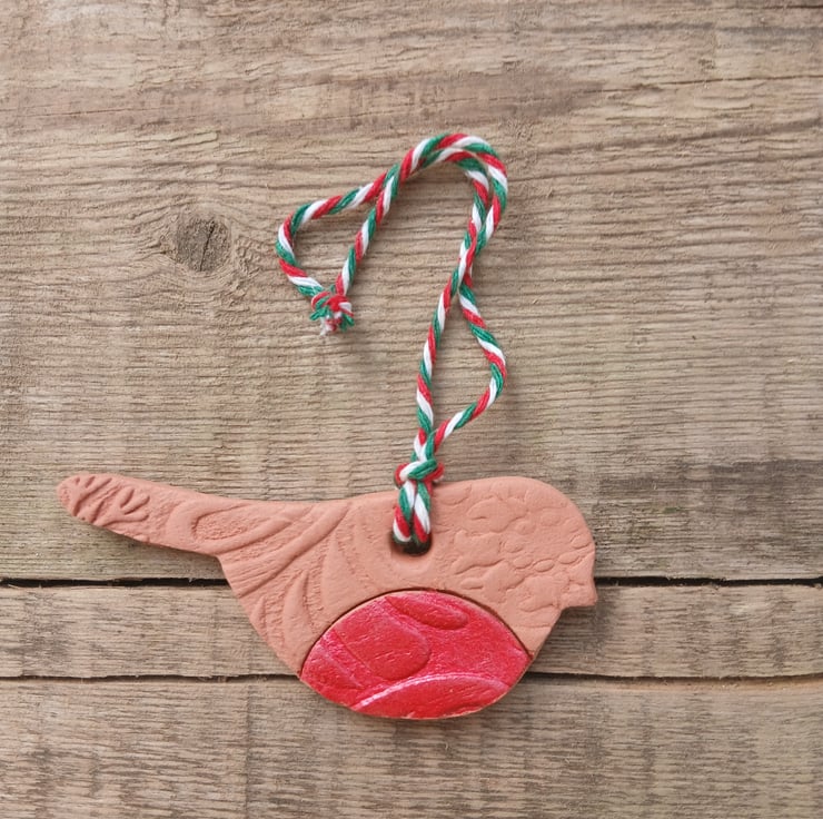 Christmas Robin Terracotta Christmas Decoration Tree Ornament
