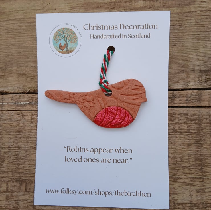 Add a traditional touch to your Christmas Tree with a hand painted terracotta Robin it's sure to be a treasured decoration for many years to come!
