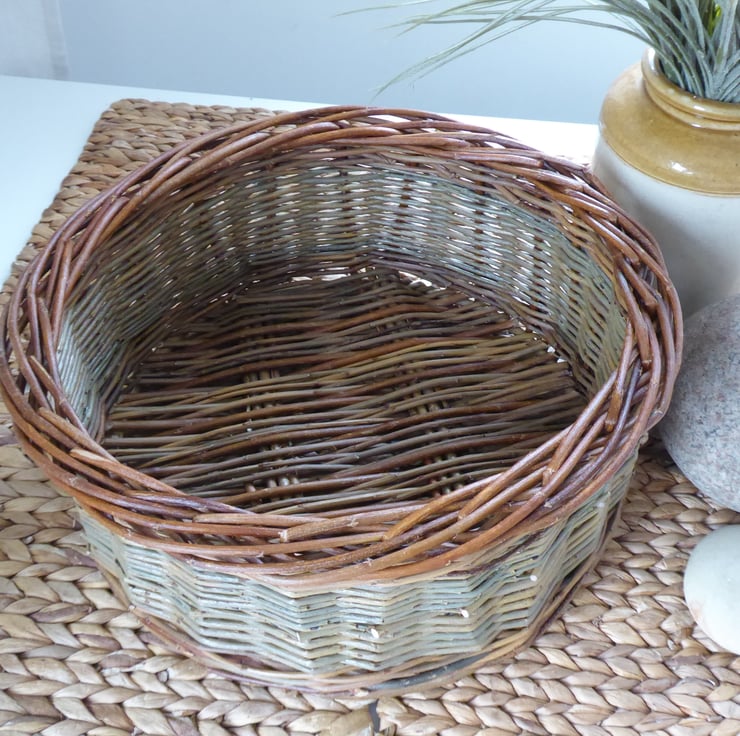 A round handmade willow basket with a Catalan style base.