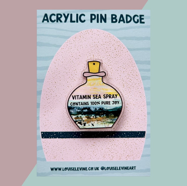 ‘Vitamin Sea’ seascape pin badge, printed from my original acrylic seascape art.