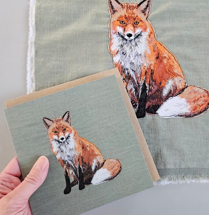 This unique countryside fox design began as an original fabric appliqué and freehand machine embroidered design, carefully scanned and reproduced on beautiful recycled card. Ideal for animal and nature lovers for birthdays, or simply to say 'thinking of you'.