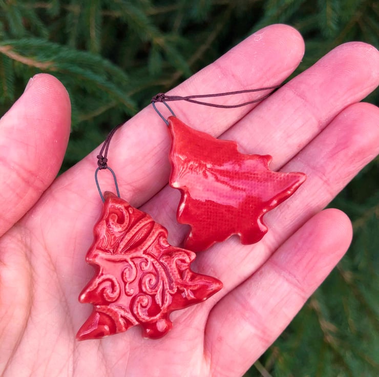 These small trees are hand-built using earthstone clay and glazes fired in an electric kiln.