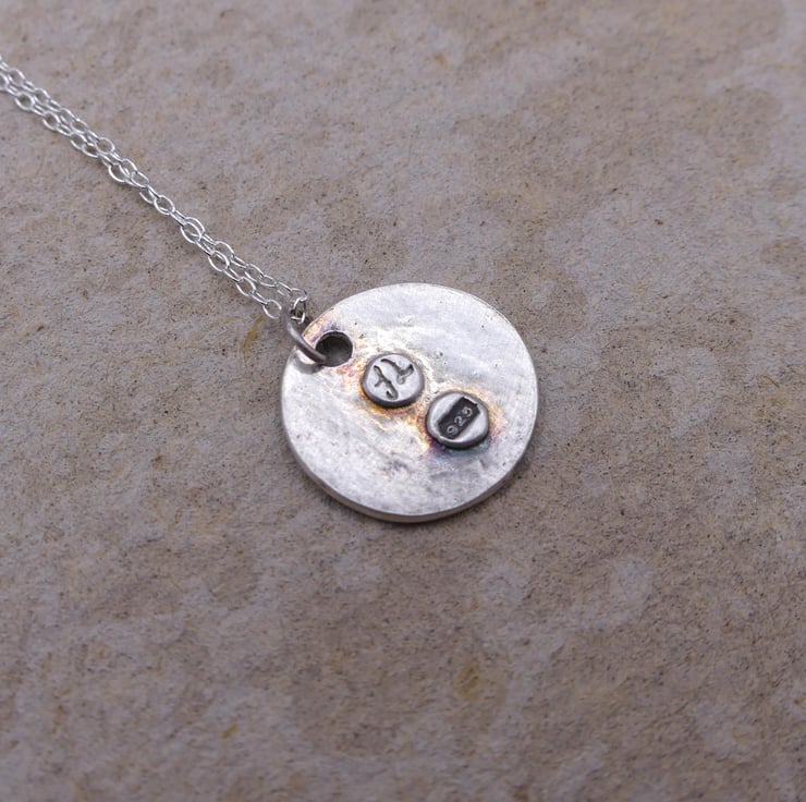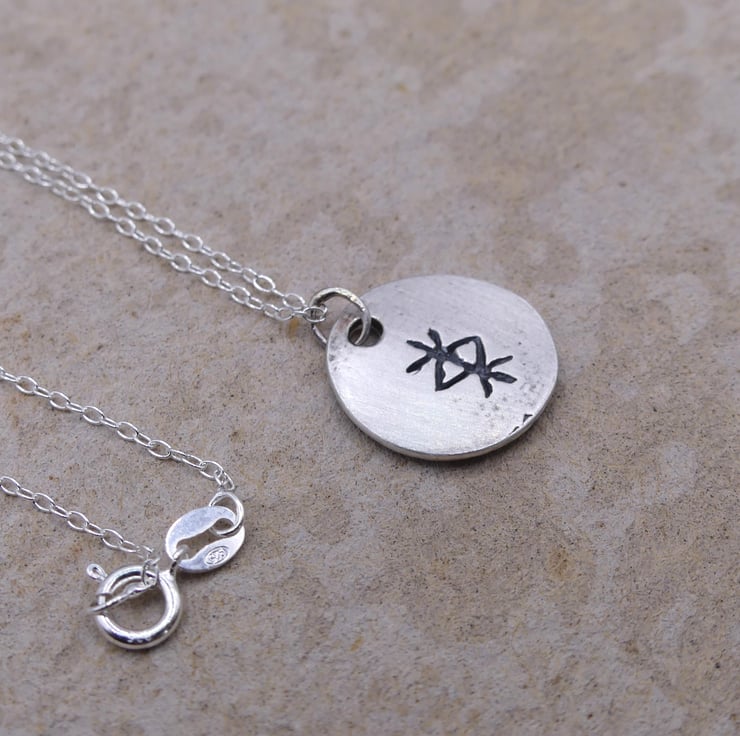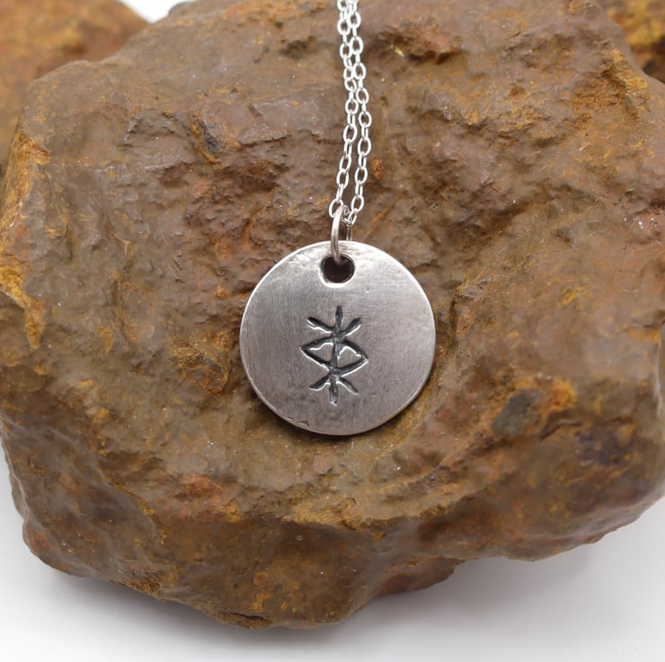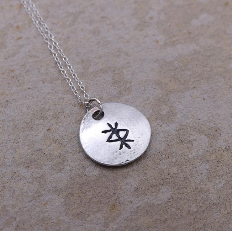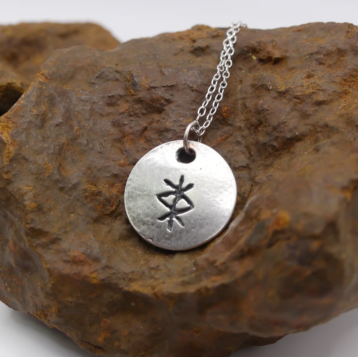 Recycled Sterling Silver Protection Bind Rune Round Pendant Necklace.