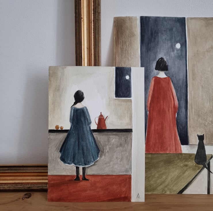 A sweet little original illustration painted on textured watercolour paper - size A5 (15 x21cm). I use professional paints & papers for my work and wrap each piece with care in strong packaging. I aim to dispatch within 3 days and tracking is included. Thank you so much for looking :)