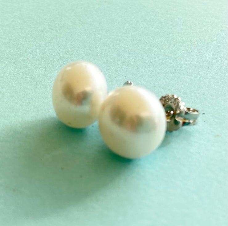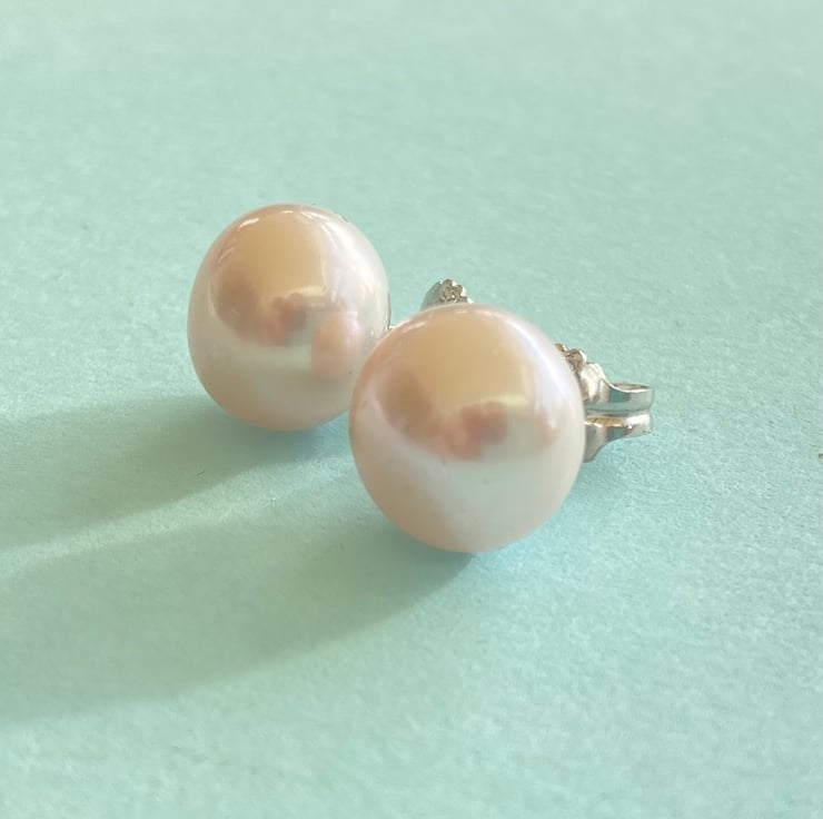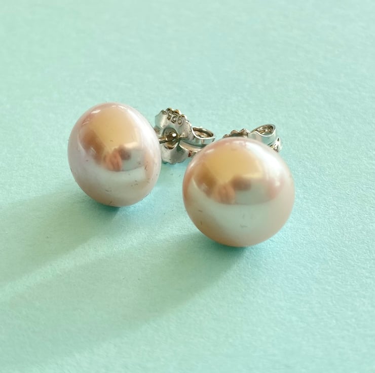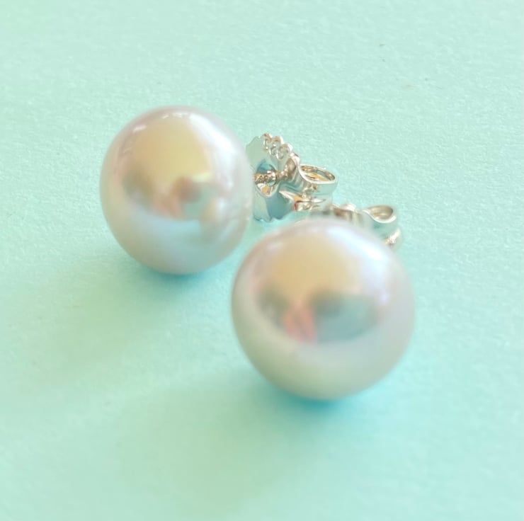Discover the elegance of our 12mm grey button freshwater pearl earrings, a perfect blend of sophistication and style. Set in luxurious sterling silver, these earrings are designed to catch the light beautifully, adding a touch of glamour to any outfit.