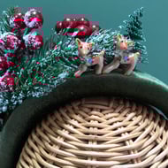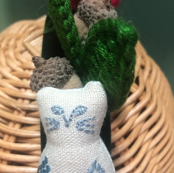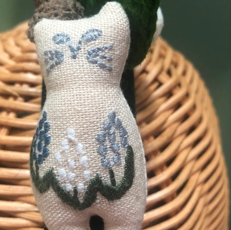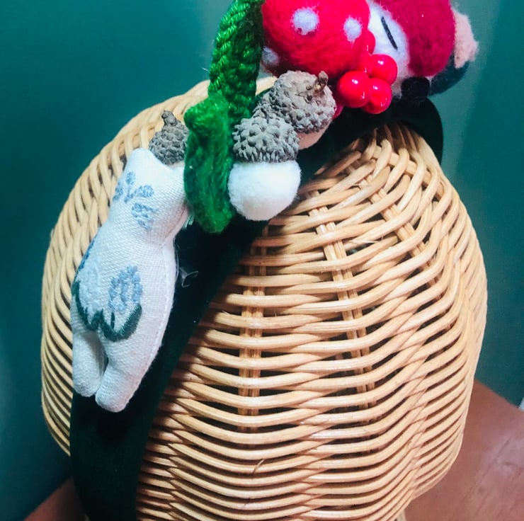 A unique hand crafted head piece with a detachable cotton embroidered cat brooch that can be worn separately.