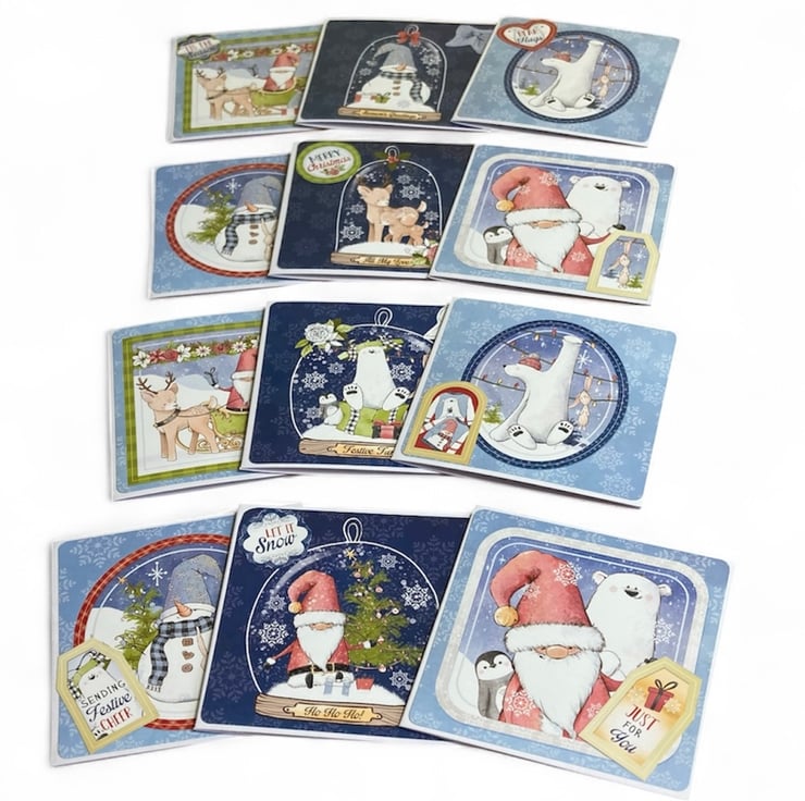 Spread a little Christmas cheer with this set of 12 adorable Christmas cards! Each 4x4-inch card is packed with charm — featuring jolly Santas, friendly reindeer, cuddly polar bears, and happy snowmen.