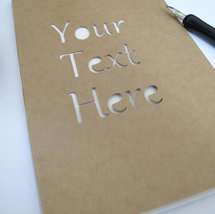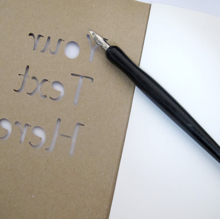 Features personalized text of your choice cut into the cover of this rustic craft notebook. These A5 artist sketchbooks make great school, office and art supplies. They are also great as a thoughtful custom gift. The notebook contains 20 sheets of 140GSM blank art paper or high quality bullet paper and is covered in brown Kraft paper. This pad is also a fun way to stock up on sketch supplies for yourself!
