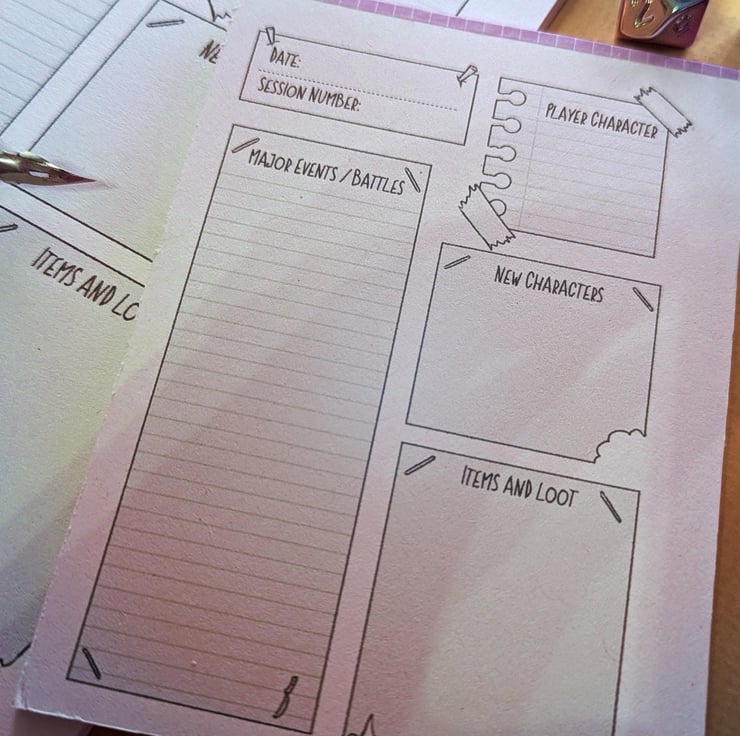 Perfect gift for players of DND 5e, one DND, pathfinder and many other TTRPGs. This sheet is designed in-house and exclusive to Pochik Arts. Available in three sizes, according to your needs, and containing 30 sheets of planner paper.