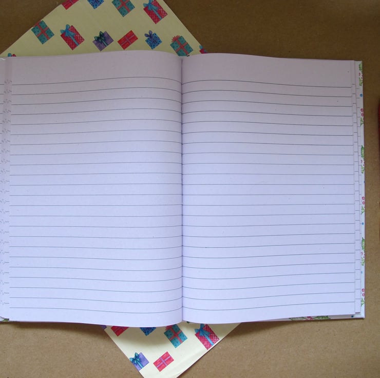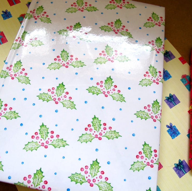 A5 casebound notebook with 192 faint ruled pages, featuring a custom design from Pochik Arts. This cute, stamp-inspired holly pattern gives the book a cosy and rustic feel, perfect for Christmas!