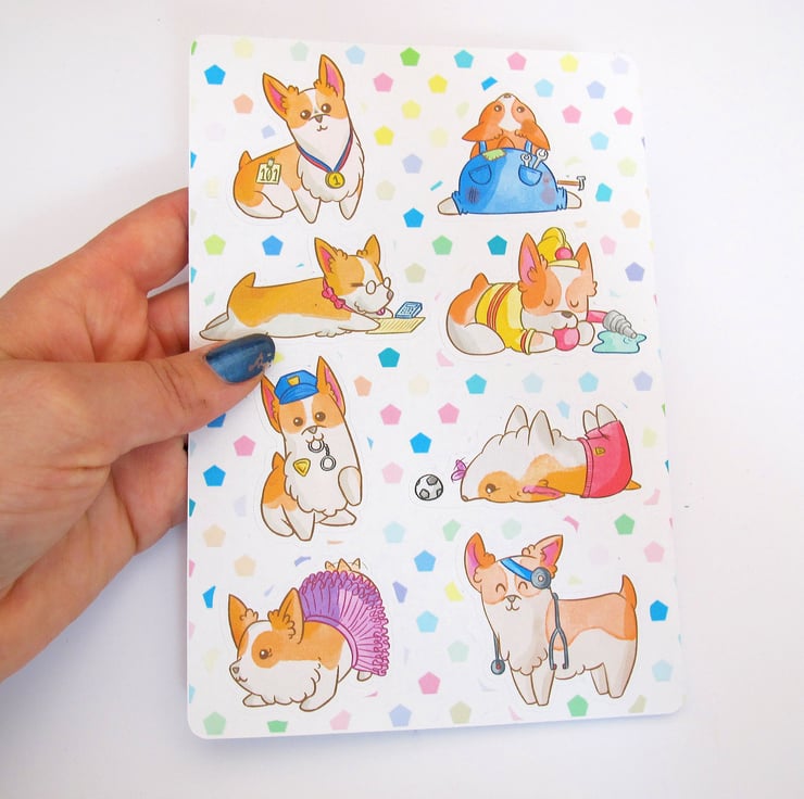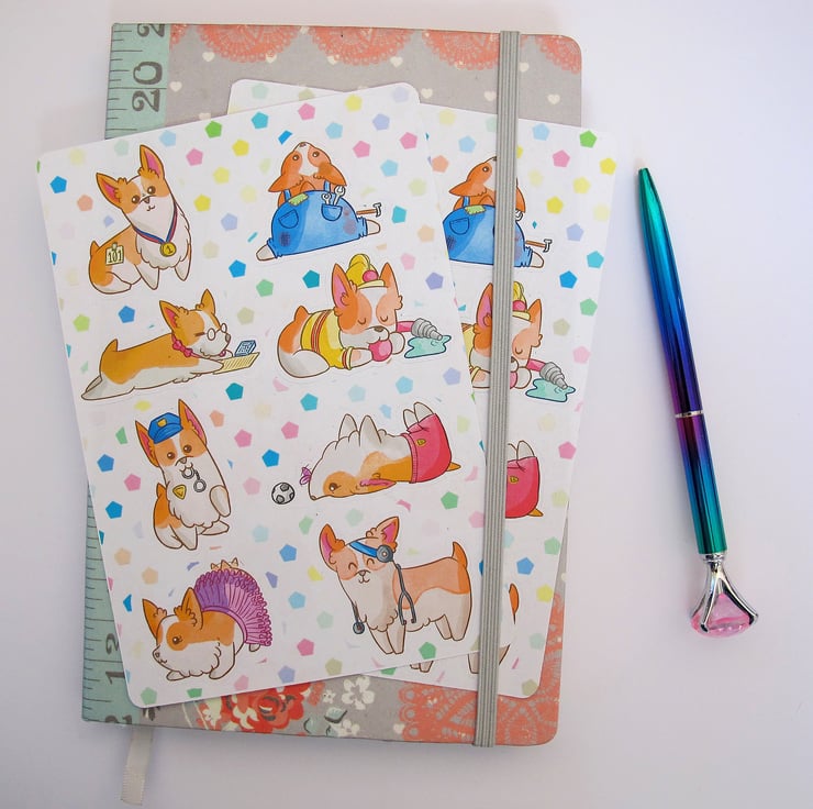 A set of cute stickers featuring colourful corgis with jobs. These are perfect for the dog lover in your life, and make a fun addition to your own stationery collection too. Brighten up workbooks, laptops, backpacks and planners with this adorable set.