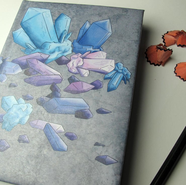 A4, A5 or A6 casebound notebook with 192 faint ruled pages, featuring a fantasy themed soul gem, geode and crystal design. A perfect gift for her, or for any fan of fantasy, magic, fairy and DnD aesthetics.