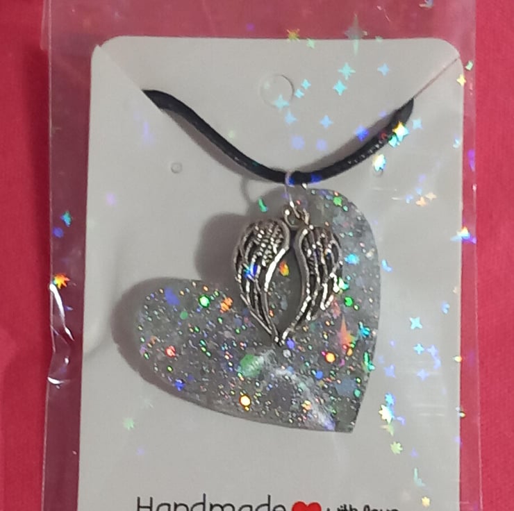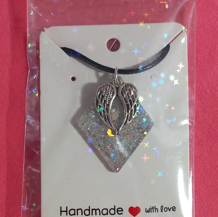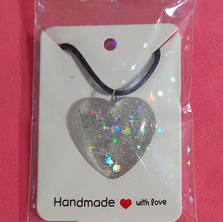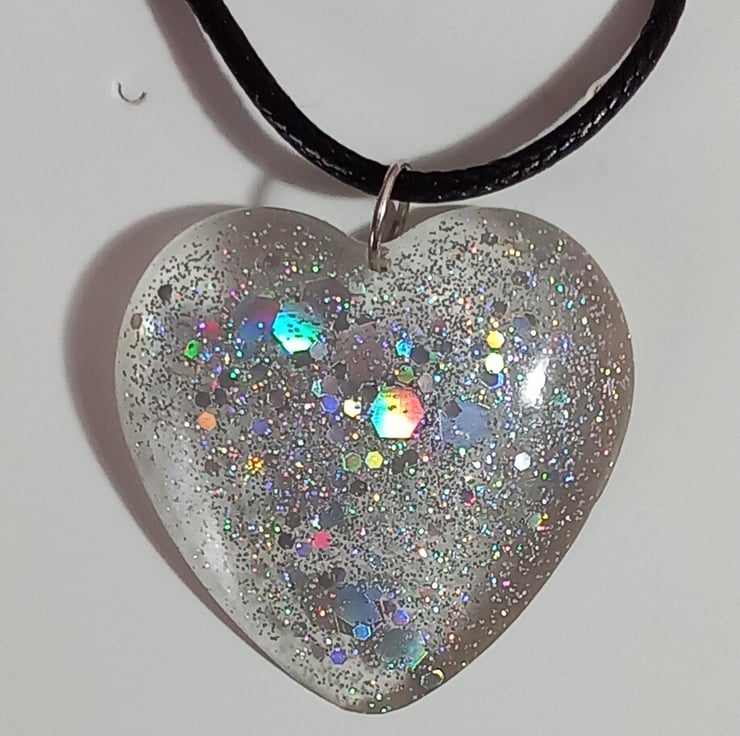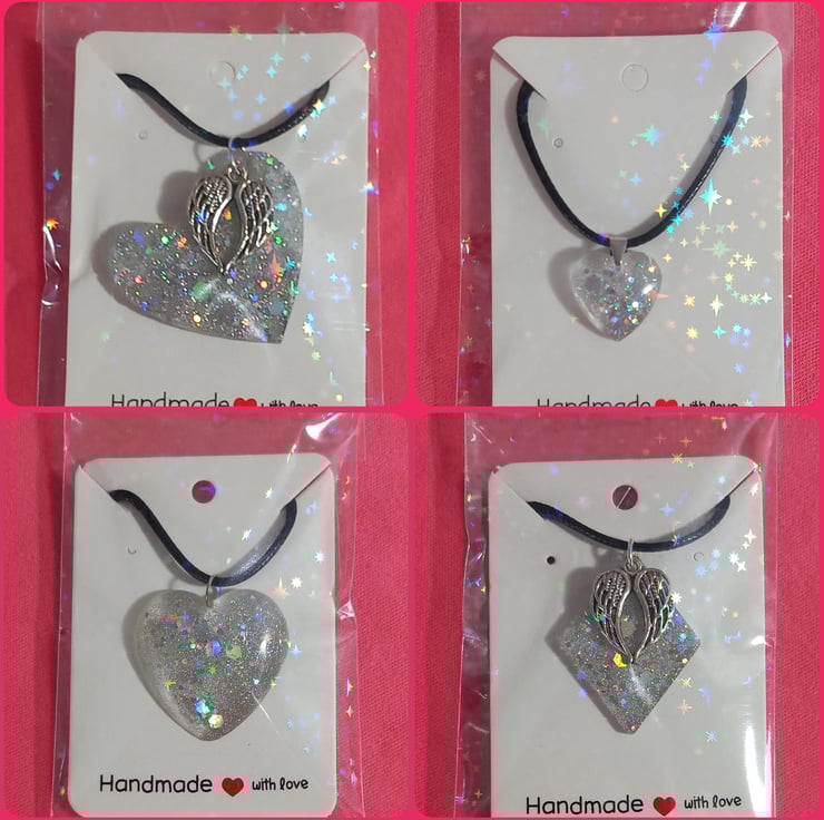 Sparkly Christmas necklaces, Resin silver pendants, Holographic glitter sparkle,