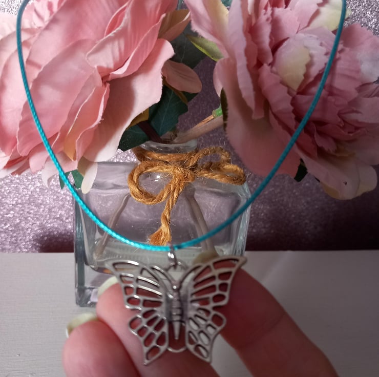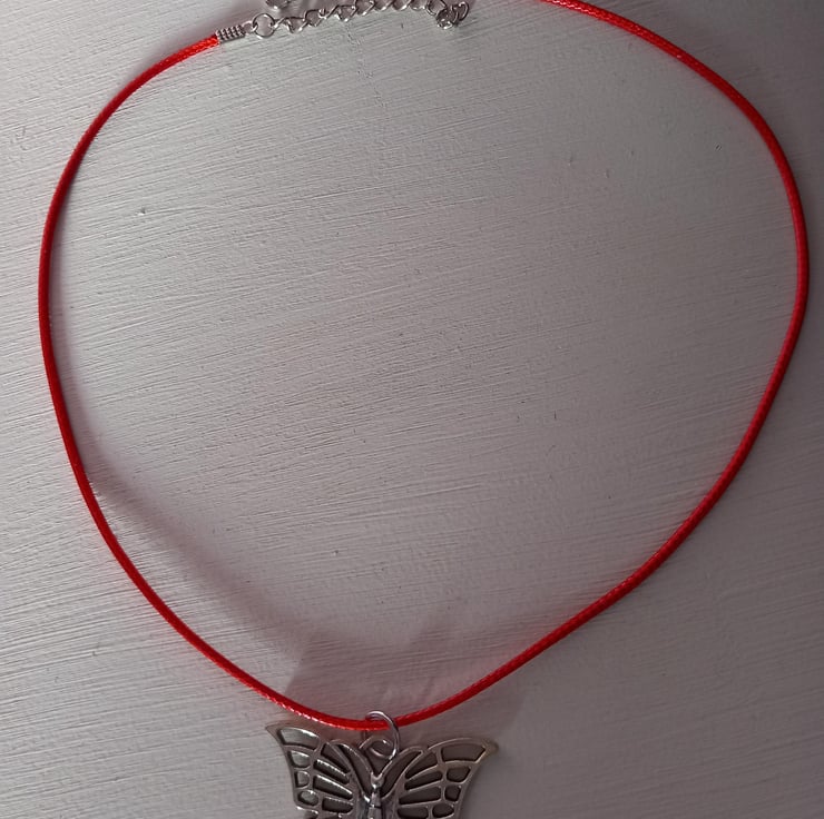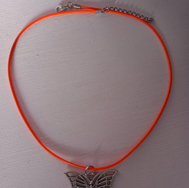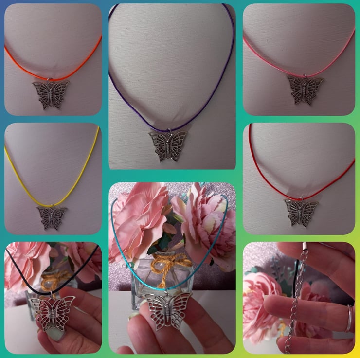 Butterfly pendant,Cord necklace,TurquoisePurple,Red,Orange,Yellow,Pink or Black
