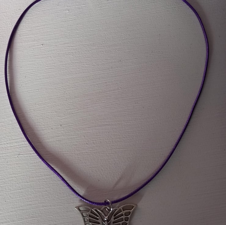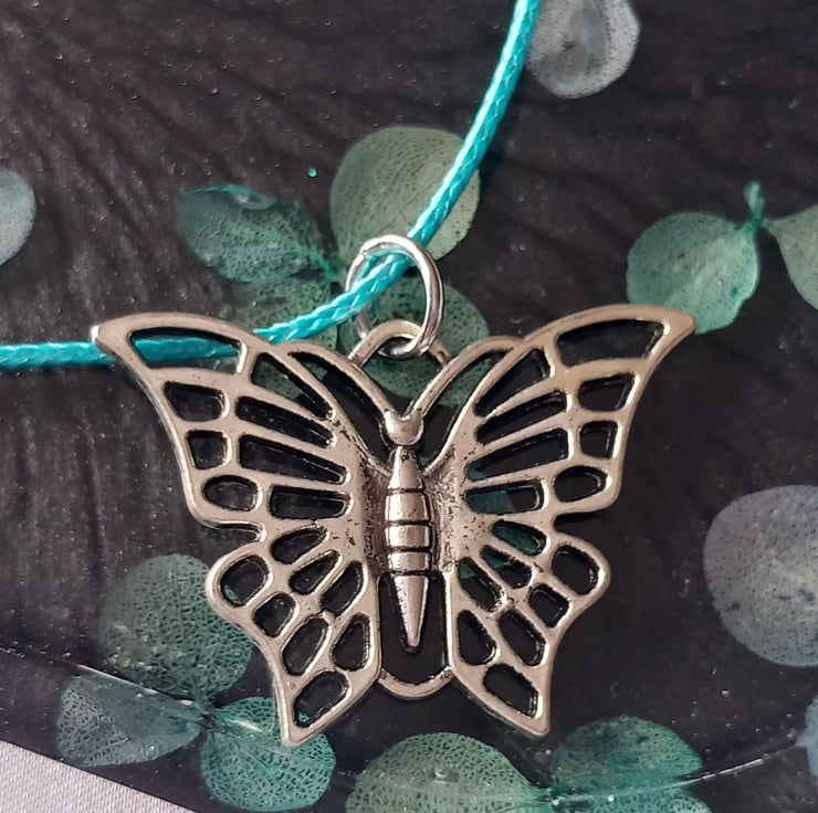 Gorgeous silver alloy Butterfly pendant set on a cord chain