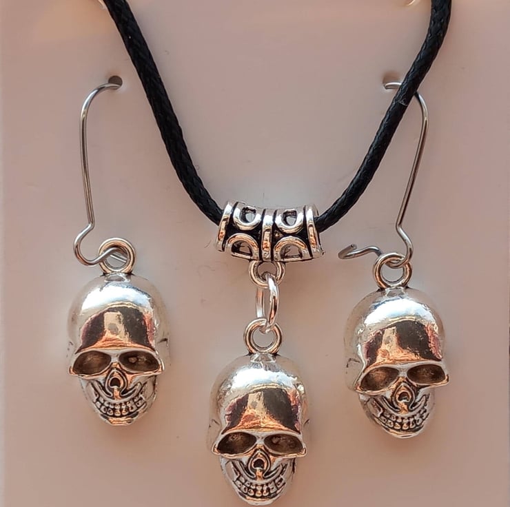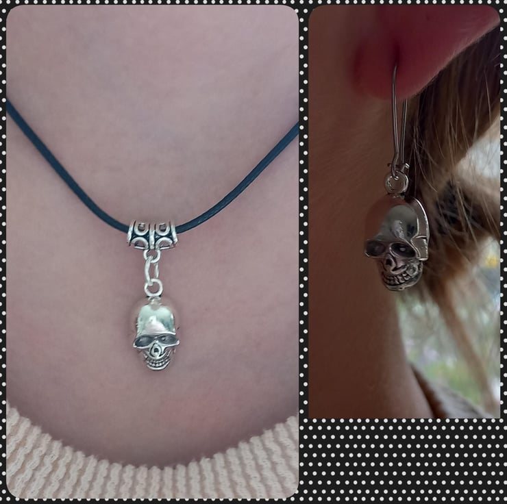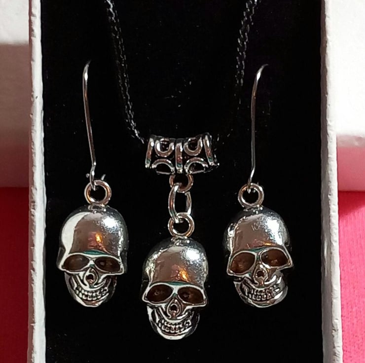 Goth jewellery Skull earrings,Boxed Necklace & Earrings set ,Halloween,Skeleton