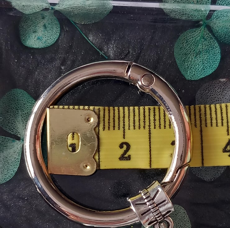 The ring has an inside measurement of approx 2.5cms & is easy to push openclosed whilst being secure