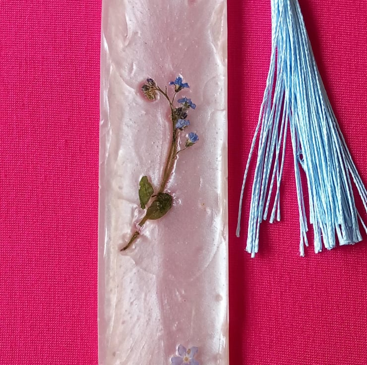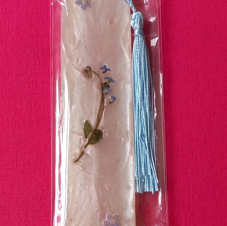 This has to be one of my favourite the gorgeous tiny Forget me Not flowers grown in my garden,harvested & dried when at their most beautiful & then captured in a bookmark with resin & a white base to make those flowers stand out