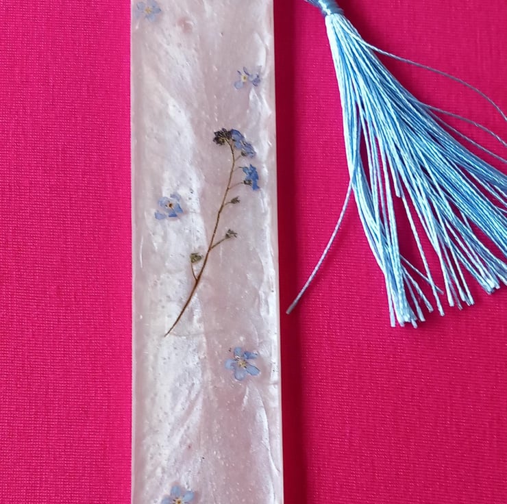 This has to be one of my favourite the gorgeous tiny Forget me Not flowers grown in my garden,harvested & dried when at their most beautiful & then captured in a bookmark with resin & a white base to make those flowers stand out