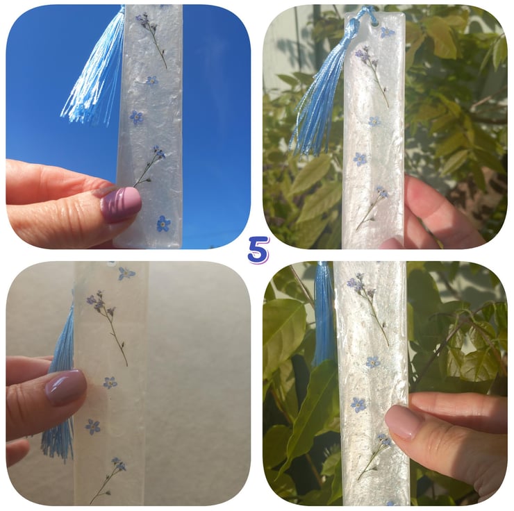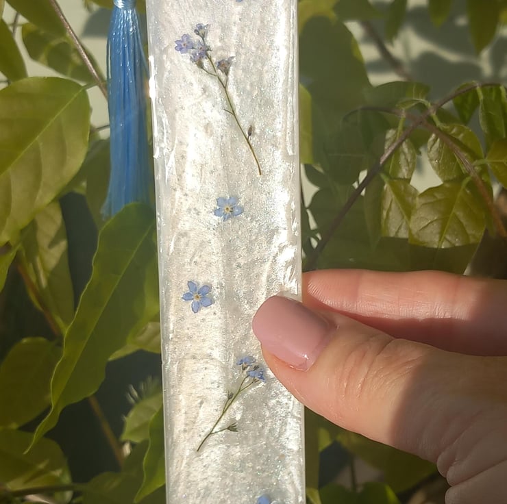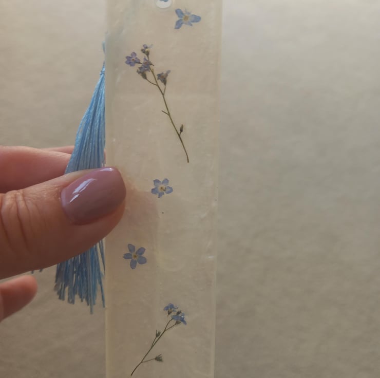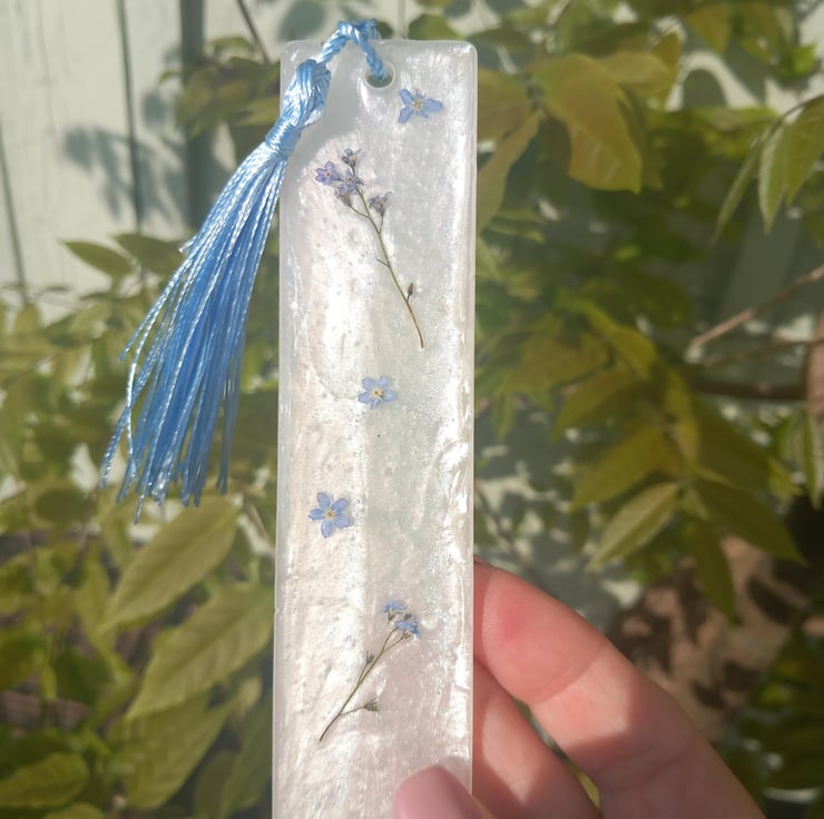 This has to be one of my favourite the gorgeous tiny Forget me Not flowers grown in my garden,harvested & dried when at their most beautiful & then captured in a bookmark with resin & a white base to make those flowers stand out