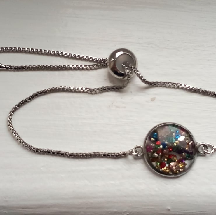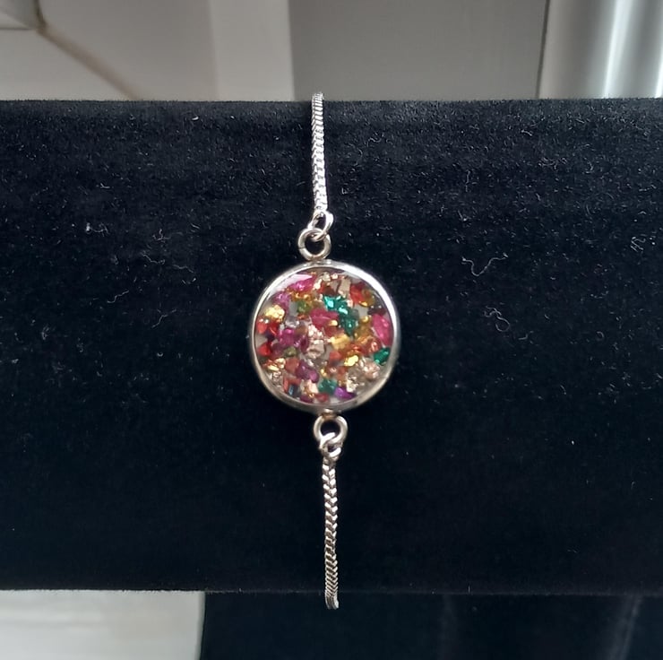 Silver slider bracelet Birthday gift her Multicoloured unique gift Friend Sister